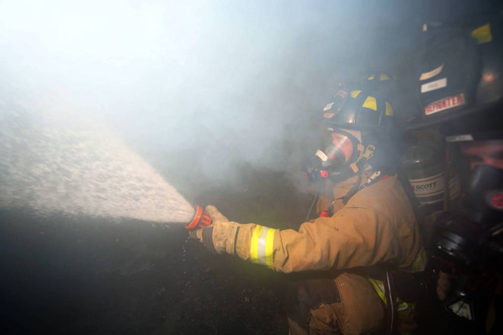 Ed Klaszky, a firefighter with Clark County Fire Dept. in Nevada, during a controlled burn training exercise organized by the Oak Harbor Fire Department on Saturday, May 22. Photo by Bryan Fick/WestCoast Fire Media