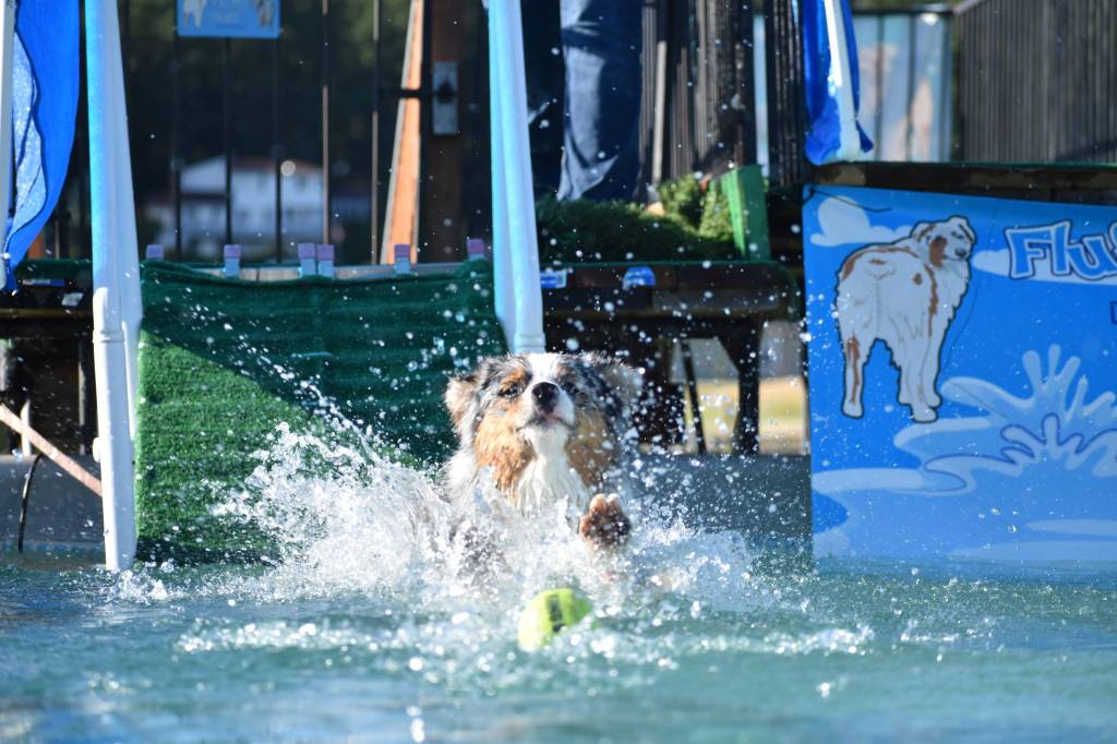 Dock diving, sometimes called dock jumping, is a competitive event in which dogs are judged on how high and far they can jump from a stationary dock and into a pool. She offers a few classes. For more information, visit fluffybuttdogtraining.com.