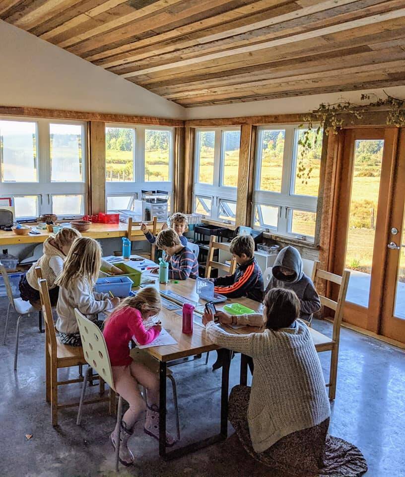 The Peaceful Valley campus, which Alampi currently houses on her own property, is nontraditional, to say the least. Its primary classroom is a repurposed goat barn with a scenic view of the farm valley through its many windows. Chickens and goats live in pens right outside the classroom, and horses pasture a short walk away near the learning center’s massive garden.