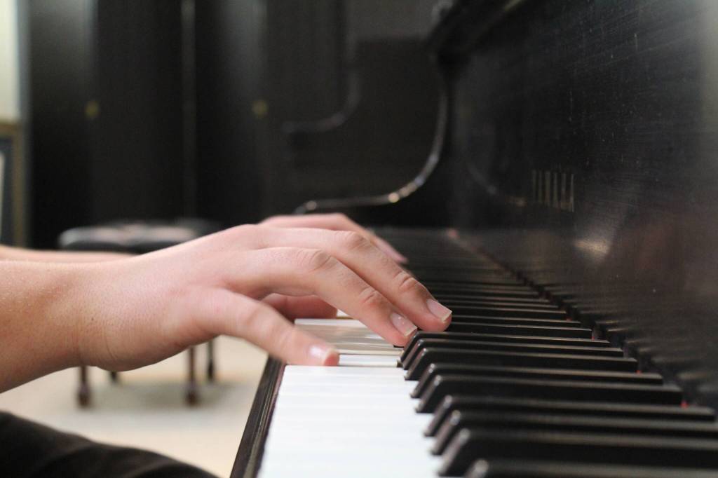 Matthias Pierson practices piano in a lesson with Maureen Girard.