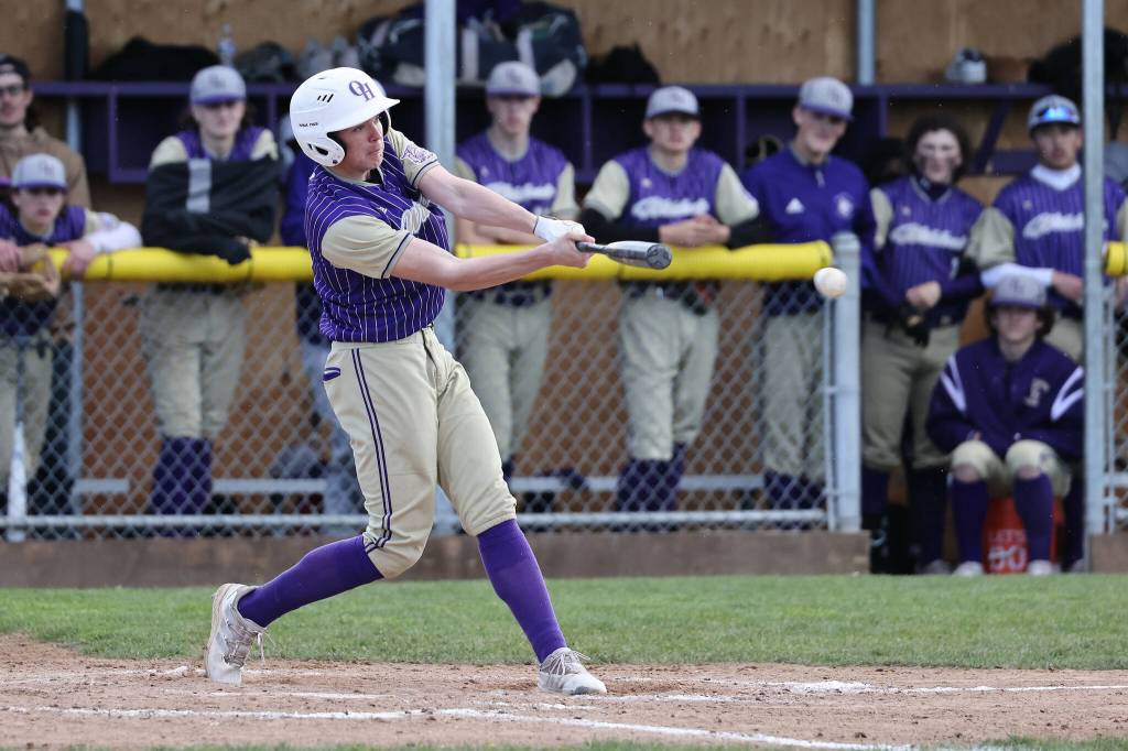 Oak Harbor baseball player Shawn Day bats. (Photo by John Fisken)