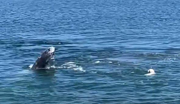 At one point during the recent whale encounter, it looked like the whale raised its head to see what was there and kept on moving.
