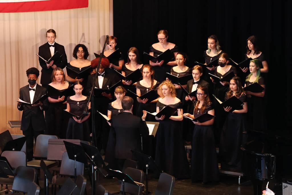 The Oak Harbor High School Harbor Singers performed “Hymn to Freedom” and “He Ain’t Heavy” at the Oak Harbor Community Veterans Day ceremony Friday.