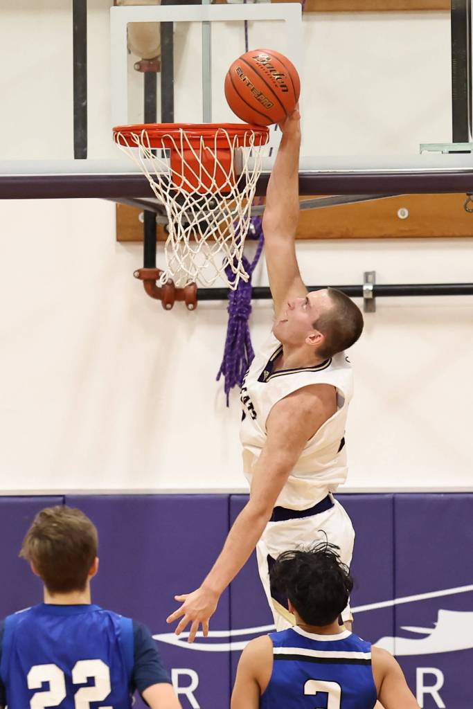 Oak Harbor athlete Noah Tuner dunks the ball at a Dec. 2 game agaisnt La Conner. Oak Harbor defeated La Conner 73-44 in the first game of the season.