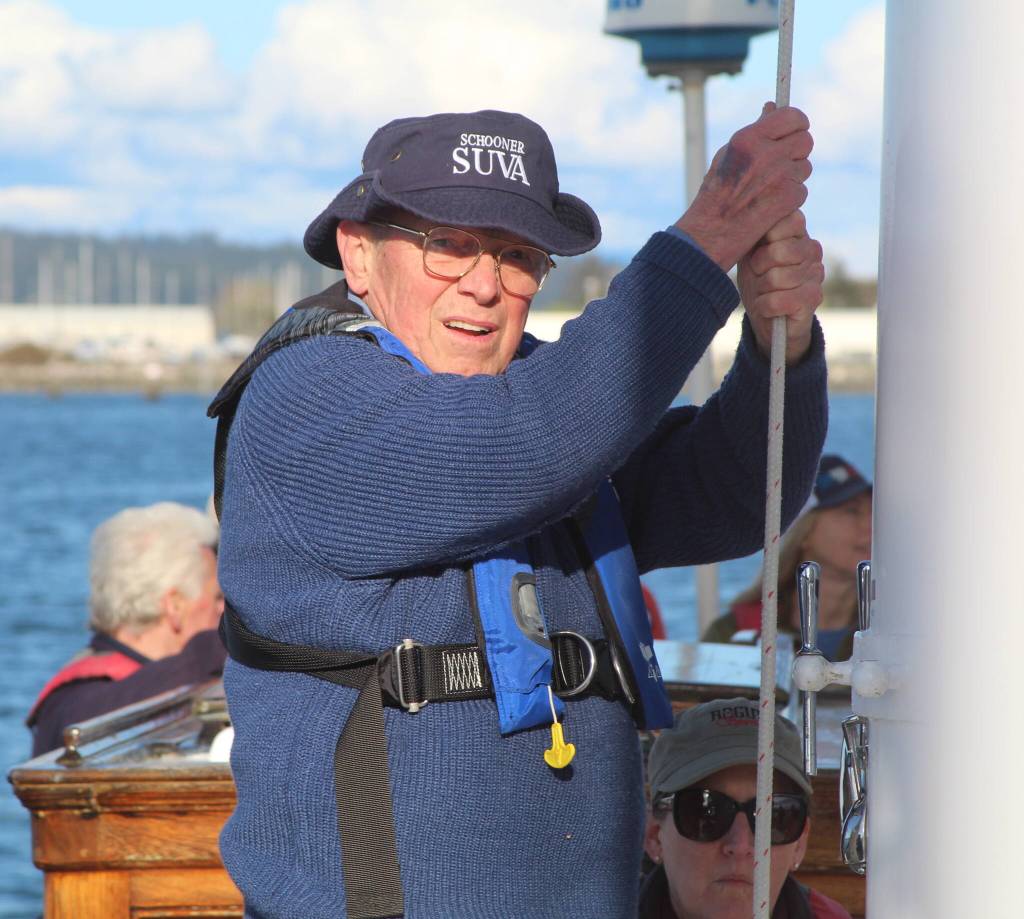 Paul Bloch participates in a crew training April 24 aboard the Suva. (Photo by Karina Andrew/Whidbey News-Times)