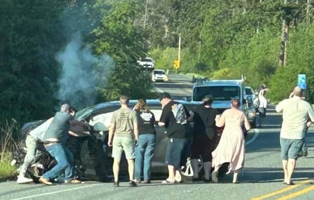A group of strangers on North Whidbey saved a man’s life earlier this year by pulling his unconscious body out of a smoking car moments before it burst into flames.