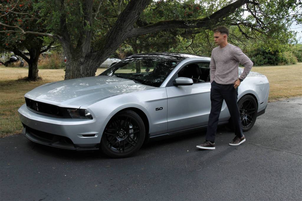 His own current set of wheels is his third silver Ford Mustang – the first crashed, the second flooded.