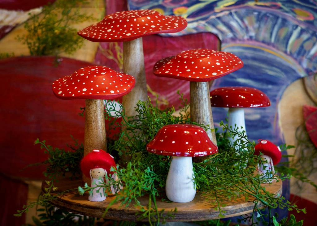 A stunning display of red-and-white capped mushrooms greets you upon stepping into Bayview Garden, located at 2780 Marshview Ave. The toadstools come as ornaments, on glasses and in books.