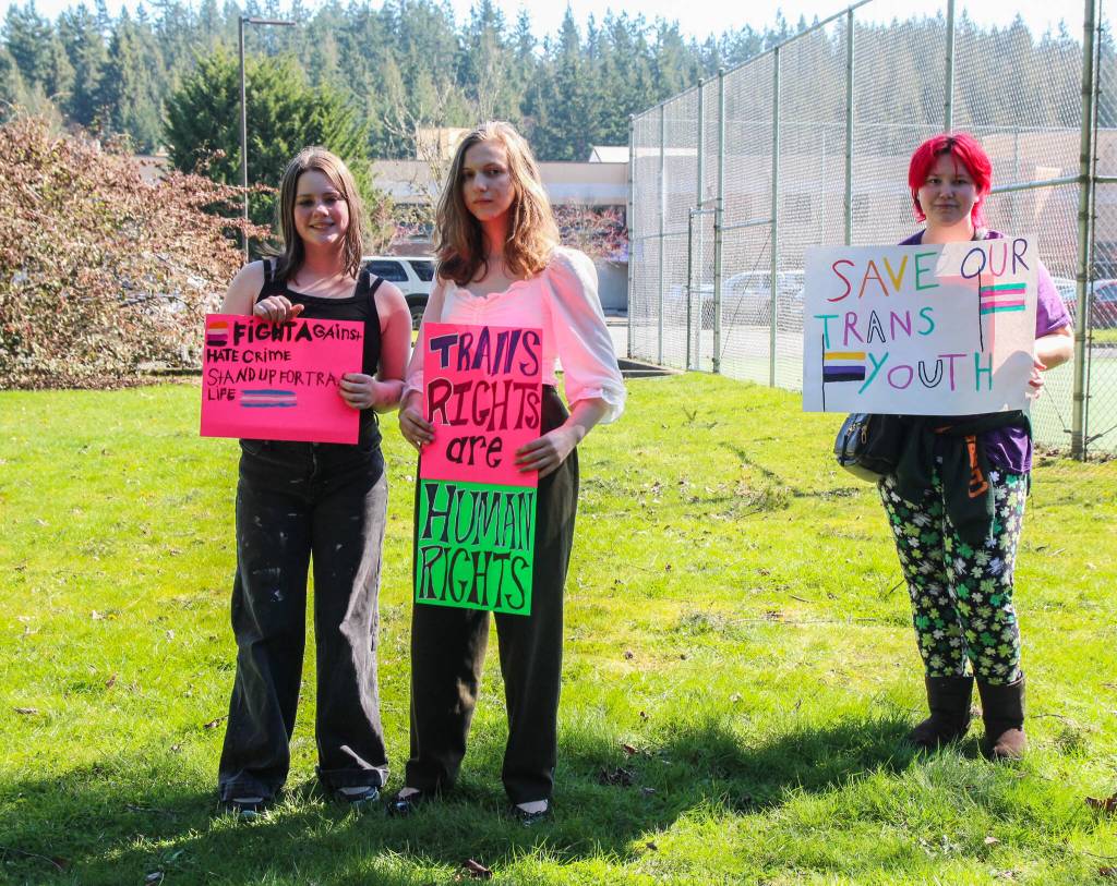 The South Whidbey walkout was organized by Leilani Floyd and Aryn States, respectively the president and vice president of the district’s Gender Sexuality Alliance, a group that provides support for LGBTQ+ students who are navigating their gender identity or are struggling with their mental health.