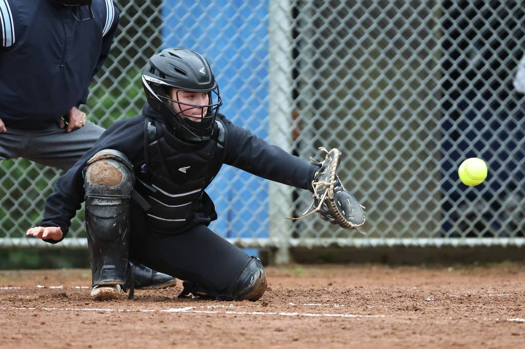 South Whidbey eighth grader Gretta Jones catches a ball during a game against Cedar Park Christian on April 24. The team’s record is 7-6 this season.
