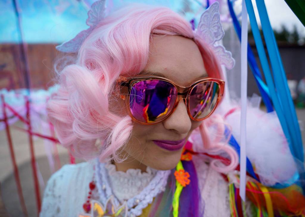A community came together joyfully and colorfully for the South Whidbey Pride Parade and other events in Langley on June 22. Above, drag queen Vivienne Paradisco performs after the parade.