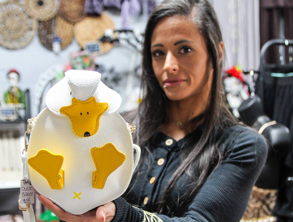 The boutique has a wide variety of whimsical statement pieces that Qazi said can be conversation starters. Frog rings, crab purses, duck backpacks, ruffled skirts, My Little Pony earrings, crochet hats for cats, corsets and vintage mink scarves, just to name a few.