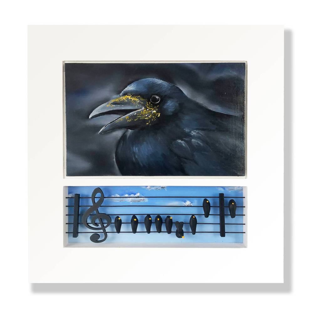 Last year’s painting, “CrowBar,” was also inspired by the crows’ communication skills and depicts a group of crows hanging out at a bar.
