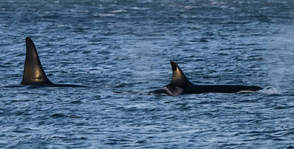 Cindi Rausch, who has been following orcas around the island for the past three years, took some photos of the historic moment, comparing the whales’ strength and agility to a dancer’s.
