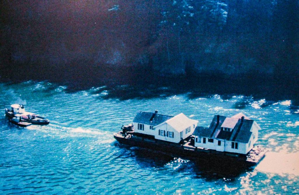 She wasn’t the only one to entrust her house’s safety to Puget Sound. Her uncle Howard and her aunt Avis also had their log cabins plucked from their properties on the west side and barged all the way to Dugualla Bay.