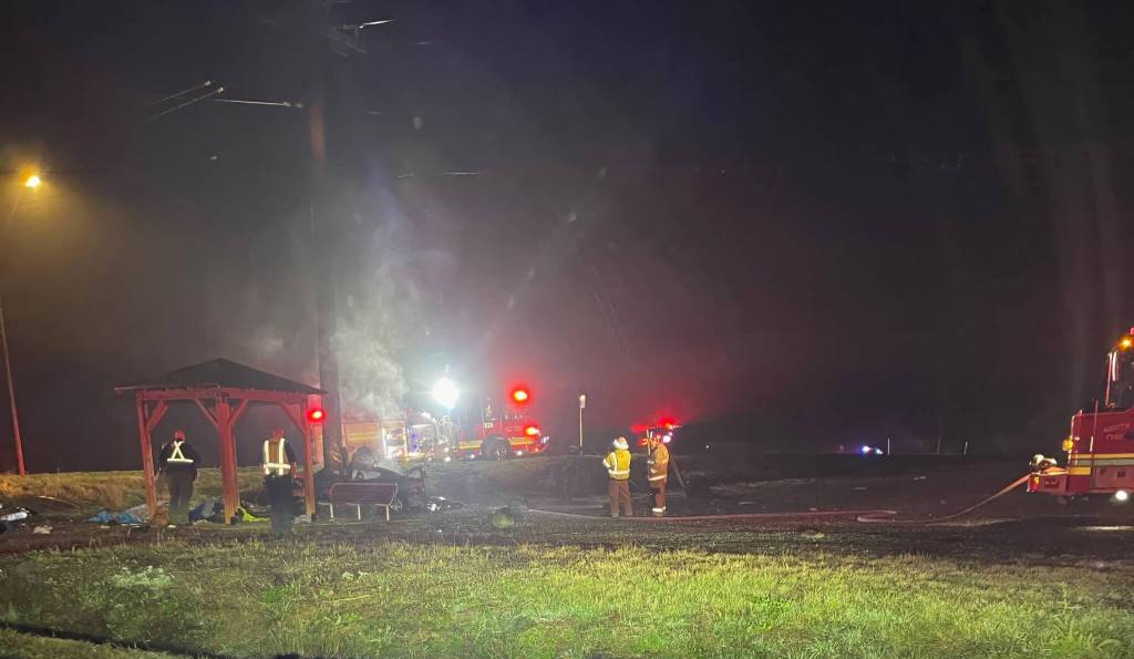 Jeff Pangburn, 55, was lying under the gazebo at the Libbey Road and Highway 20 intersection on North Whidbey when, at about 3 a.m., he heard what he described as a “big crack.”