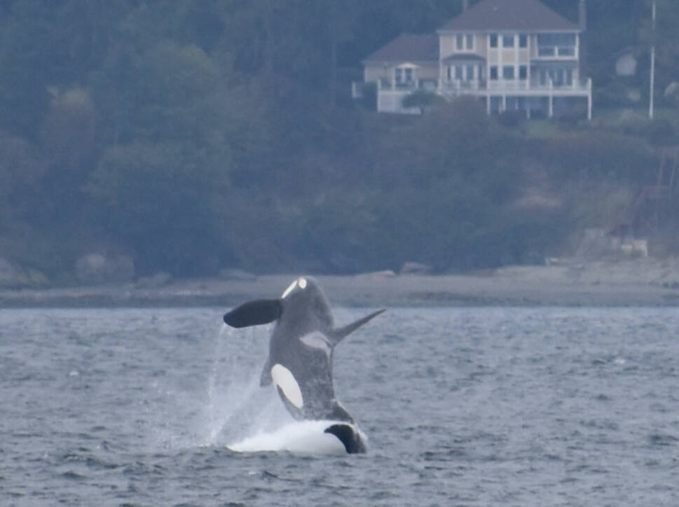 No reports of fashion-forward orcas in salmon “hats” have been made since then. According to the Whidbey-based Orca Network, in the late 1980s the southern resident orcas appeared to be fond of displaying dead salmon on their heads.