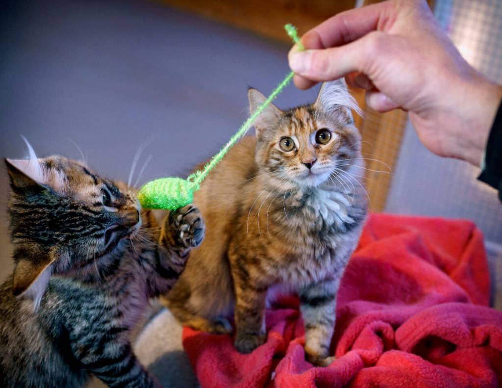 The very first adoption in the revamped Cat Cottage happened to involve a longtime resident. Mittens, a handsome 6-year-old tuxedo cat, was surrendered to WAIF earlier this year on Jan. 31. He shuffled between various shelter locations in Coupeville and Oak Harbor before catching the eye of adopters visiting the newly reopened Freeland Cat Cottage. He was subsequently adopted on Dec. 15, just in time for the holidays.