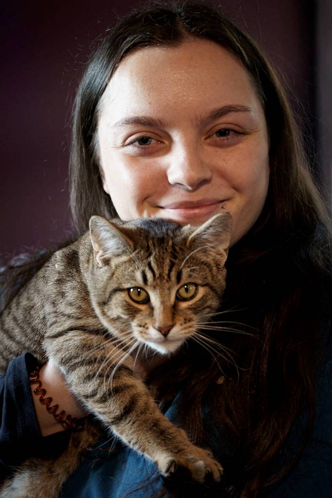 Before, wire crates on card tables crowded the room. Now, new steel cages provide a more sanitary environment for feline inhabitants. Yet it’s still an undeniably cozy place to cuddle up with a cat or kitten.