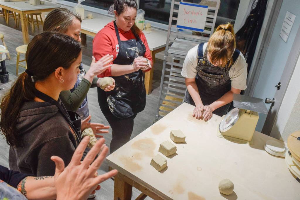 Sounds like the pottery class for beginners at Freeland’s Whidbey Clay Center is underway.