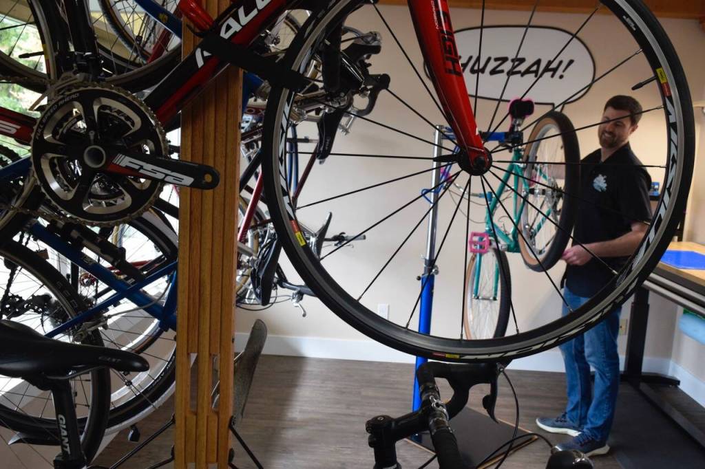 Stevens has also created accommodations in his shop for DIY repair space. He’ll charge hourly rates that includes tools and stands. He also hopes to offer bike repair workshops, which he’s already done at local libraries.