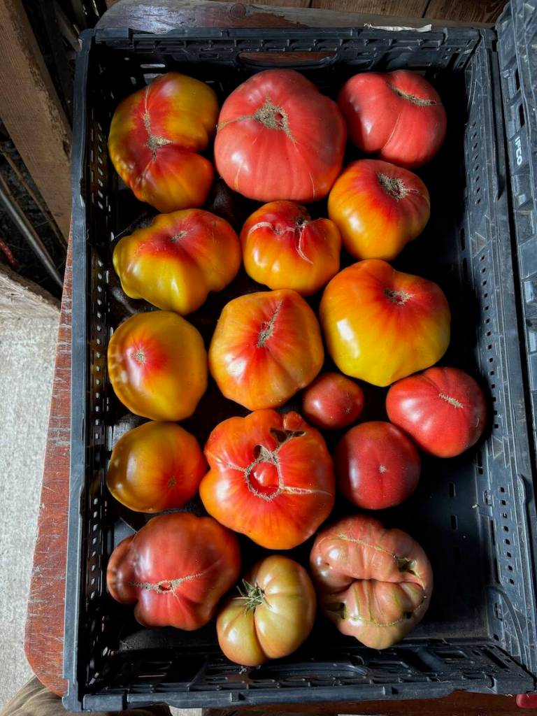 Heirloom tomatoes grown at SkyRoot Farm. (Photo by Grace Adams)