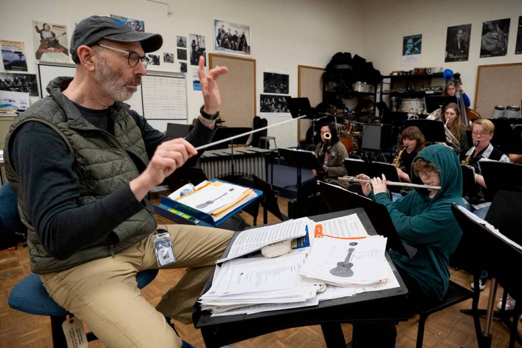 On a recent dreary Wednesday morning, the din of South Whidbey High School and Middle School was punctuated by the bright, brassy sounds emanating from Room 105, where the jazz band warmed up under the direction of Chris Harshman.