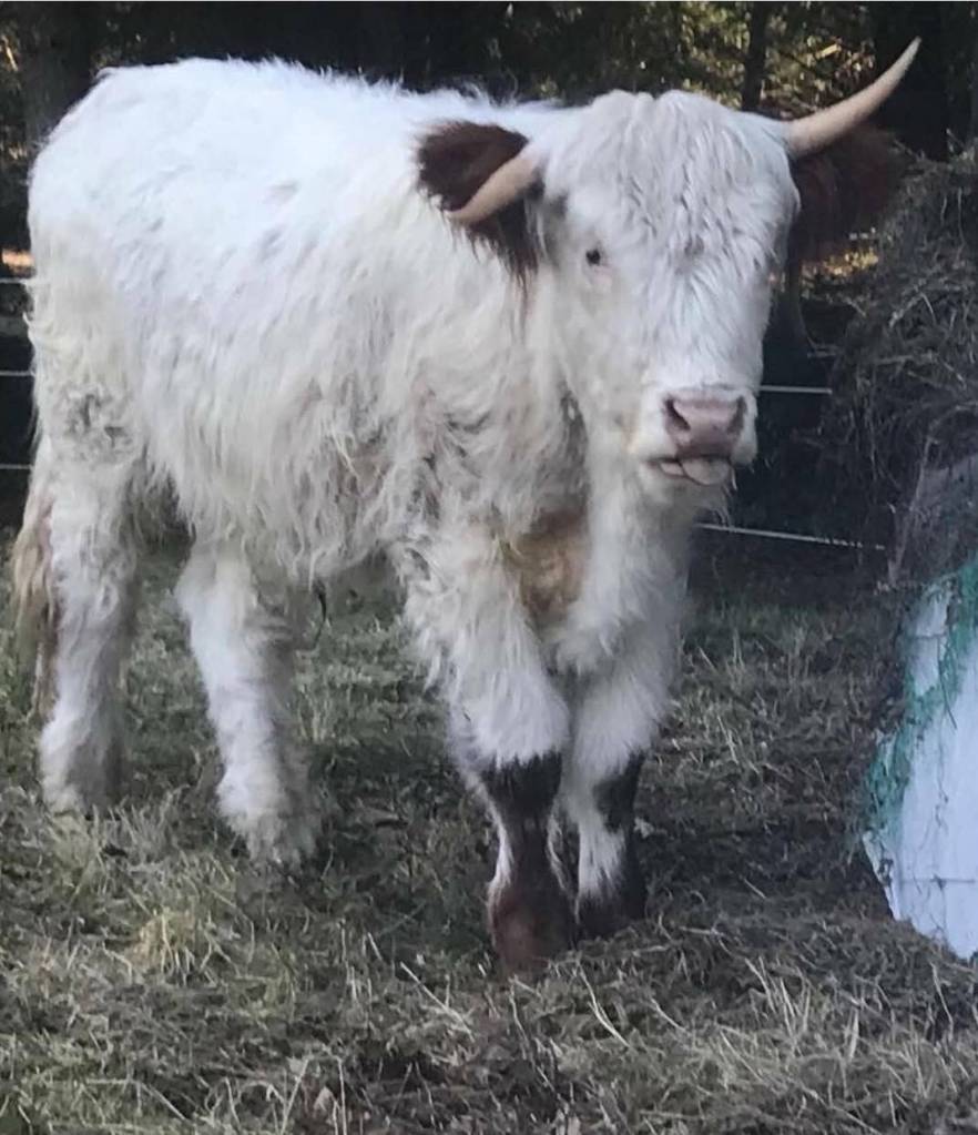The couple purchased the shaggy white beast with the mismatched horns in February. Riemer said they found that he is mild-mannered and never aggressive, though he is timid — which has turned out to be a problem for those trying to catch the 1,000 pounds of beef.