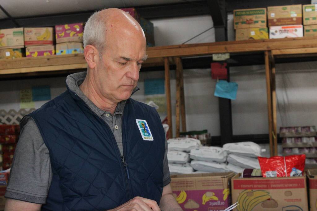 U.S. Rep. Rick Larsen met with members of the North Whidbey Help House on Tuesday to discuss how potential cuts to a federal food assistance program could affect the food bank’s ability to adequately aid those in need as demand for services grows.