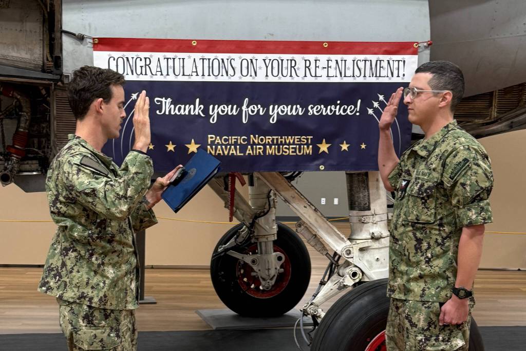 On Wednesday, Nathan Sanchez, 30, inked a four-year contract to reenlist in the Navy at the Pacific Northwest Naval Air Museum, an Oak Harbor facility which he called his “second home.” Since March 2024, Sanchez has dedicated 602 hours of his time to volunteering at the museum.