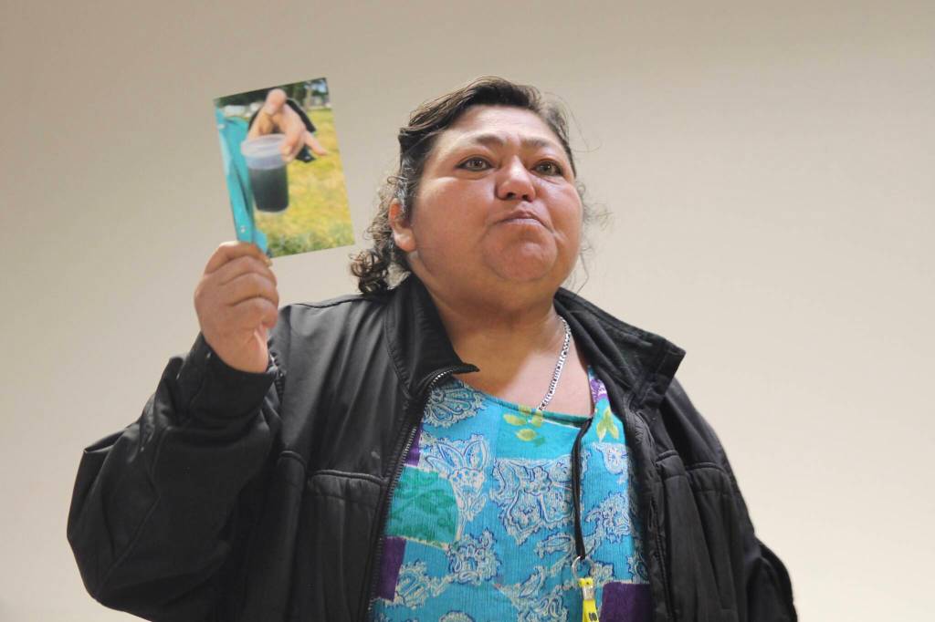 Concepción Contreras distributed photos to officials of the discolored water from their home and pictures of different skin conditions tenants aquired from the bad water they bathe in.