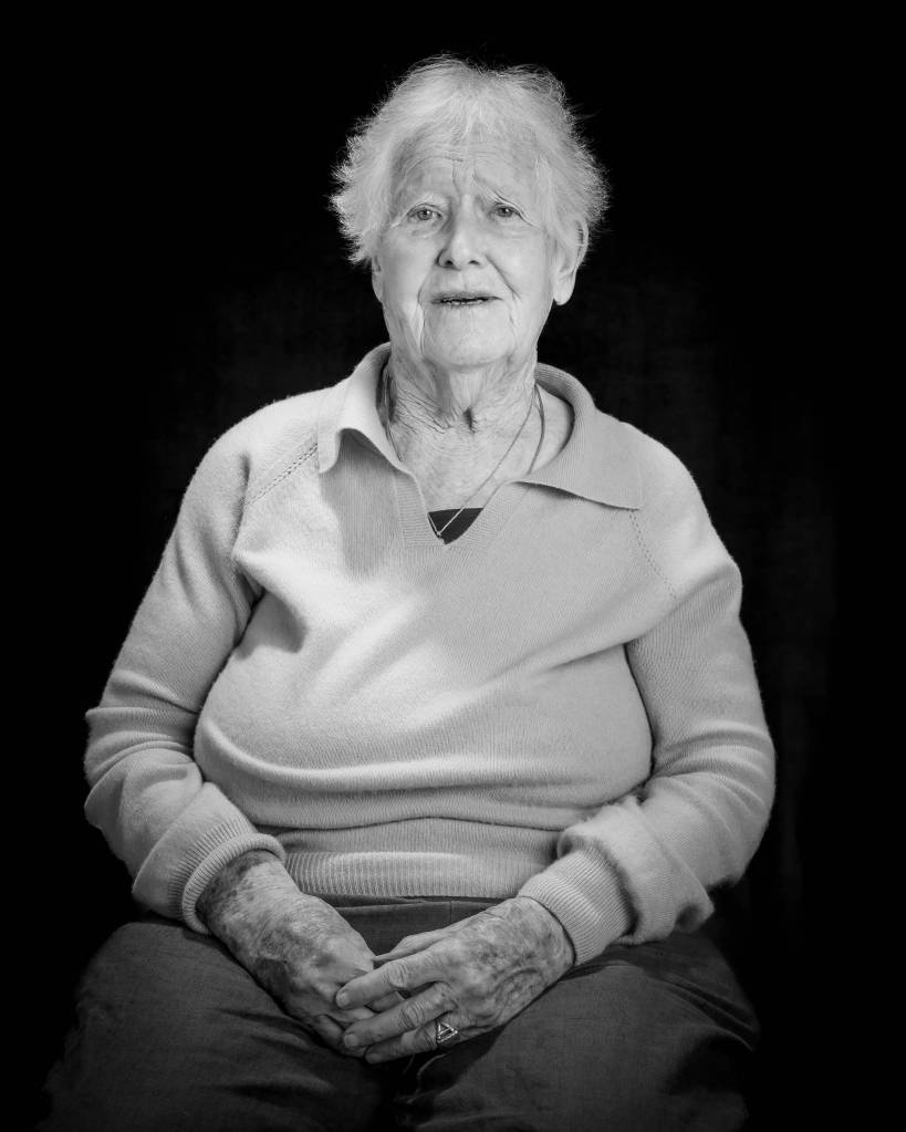 Currently on display at the Pacific Northwest Art School in Coupeville, the faces bring community together just as Hundley envisioned five years ago. From local legacy icons to quiet unknowns, they’re all on equal footing here. The kind gaze of Hedgebrook founder Nancy Nordhoff — a community builder herself — looks down from the upper row. Music photographer Dennis Browne, whose work has featured hundreds of Whidbey musicians and shows, peers at the camera from behind his own lens.