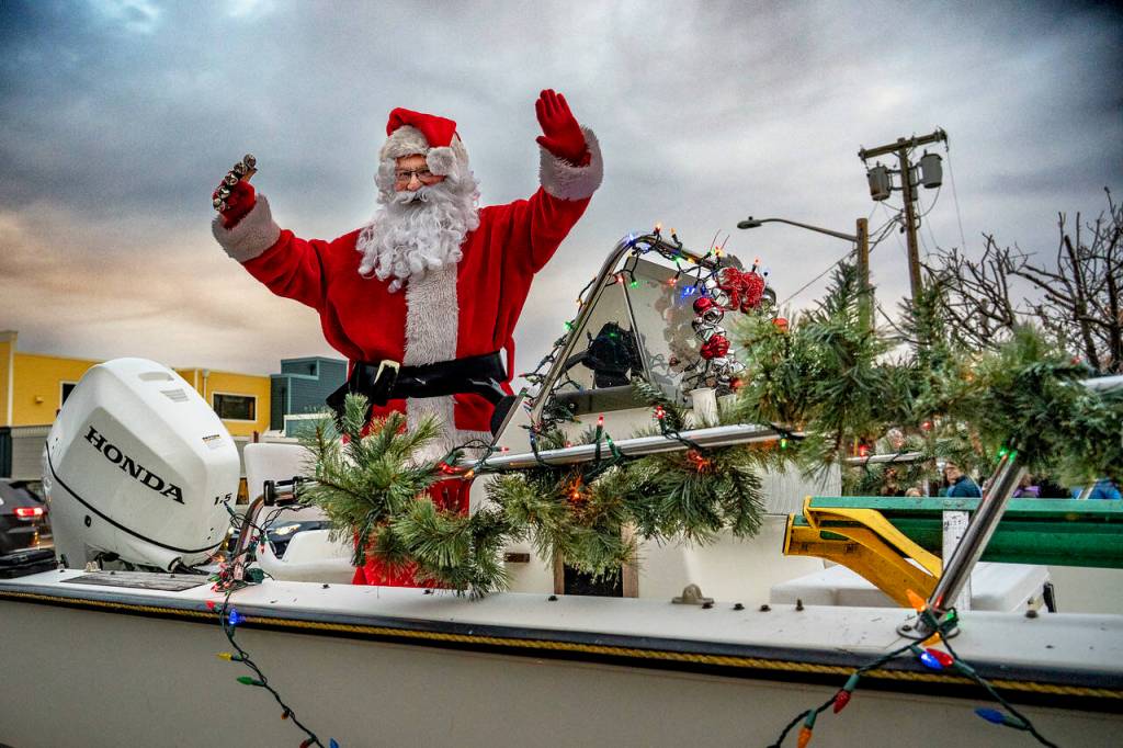 Santa Claus waves from on top of a boat. The big jolly red man arrived to the Lighting of Langley in style on the afternoon of Saturday, Nov. 29. Families sang carols, enjoyed hot cocoa and waited for the special visitor to arrive in time to light up the city’s Christmas trees. The beloved annual tradition takes place in Langley Park. Dressed in an elf hat, Joelle Berry led the caroling with the assistance of her husband, child and voice student, among others. Carolers sang along heartily with the holiday tunes, while a group of youngsters got into the festive spirit by donning Santa hats.