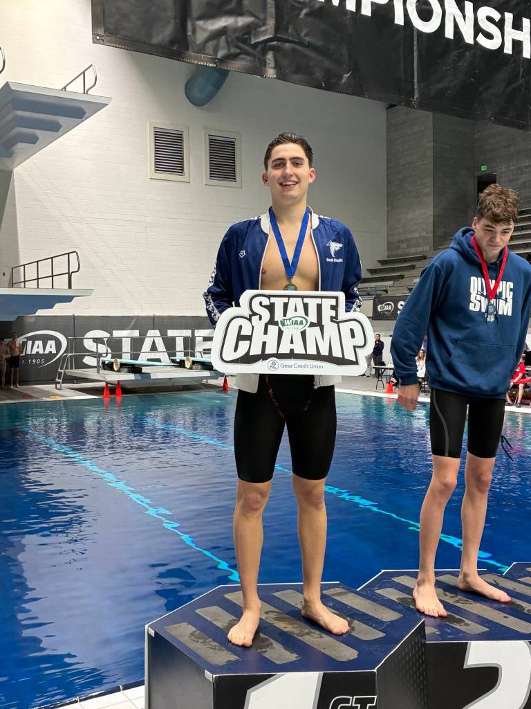 South Whidbey senior Jack Hempel won two titles at the state swim meet held Feb. 20 and Feb. 21 at the King County Aquatic Center in Federal Way. He placed first in the 50-yard freestyle and the 100-yard freestyle.