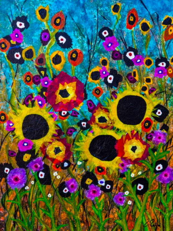 Working primarily with loose canvas and acrylics, Rochon creates big pieces, some stretching 6 feet long. His favorite subjects are flowers, which he loves to showcase in varying artistic styles, from abstract to expressionist or impressionist. Some paintings take a week, while others take only a day depending on where inspiration leads.