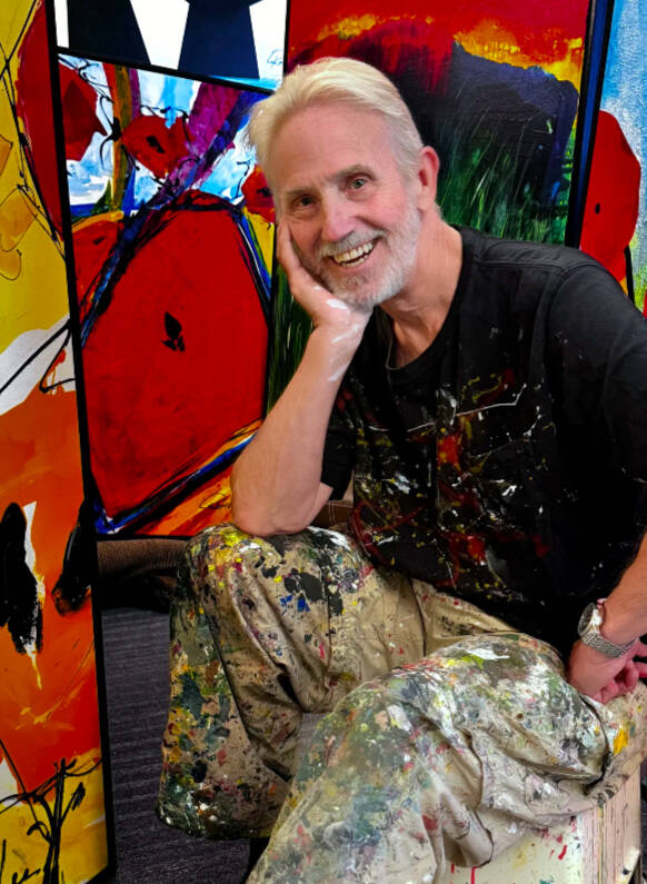 Two Whidbey artists are proving that joy can come in many forms — whether splashed across a 13-foot canvas or welded from salvaged metal.