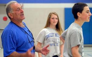 Rocco Gianni pleads with kids to stay active while playing dodgeball as part of Langley Middle School’s P.E. end-of-the-year “Olympics.”