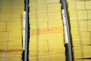 Ballots are lined up in mail trays at the Island County elections office in Coupeville. Election workers expect to count more than 3