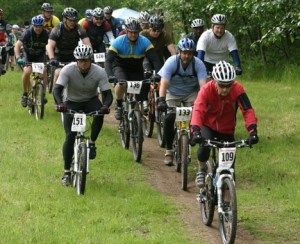Mountain bike riders take off for their grueling 5.6-mile bike ride through the woods of Langley in last year's Whidbey Island Mudder.