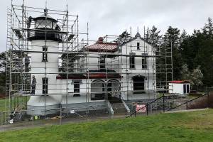 Scaffolding surrounds the iconic Admiralty Head Lighthouse, which will be closed to visitors for months as workers complete…