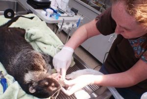 Jack, South Whidbey’s only pet coatimundi, undergoes dental surgery