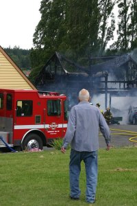 A raging fire destroyed a two-story garage with an apartment on the top floor near Mutiny Bay early…