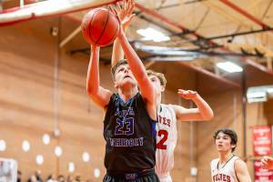 In an intense battle expected in a rivalry game, the South Whidbey High School boys basketball team won…