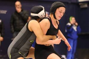 South Whidbey’s lone female wrestler, Nicole Helseth, finished fifth at the Arlington Girls Rumble Saturday, Jan. 12.