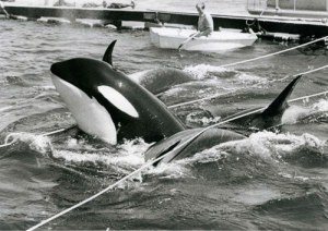 Orcas struggle for their freedom during the famous 1970 round up in Penn Cove. Whidbey’s Orca Network is suggesting one of two new 144-car ferries being built by the state be named after the event’s last remaining survivor