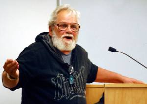 Justin Burnett / The Record Callahan McVay entertains a crowd as he works in his Second Street studio and gallery in Langley. McVay has turned his shop into a success by selling lessons