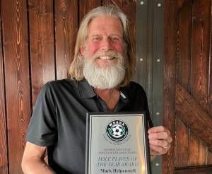 Mark Helpenstell won the 2022 male soccer player of the year award from the Washington State Adult Soccer Association.