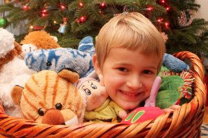 Record file                                Weston Dill cozies up with a basket full of stuffed animals in 2014. Dill collected donations for stuffed animals two years ago.