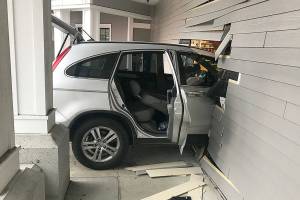 Two people were transported to the hospital Friday afternoon after a car crashed through the wall at Linds…
