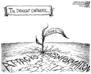 Adam Zyglis depicts the analogous nature between drought across the United States and the state of political discourse.